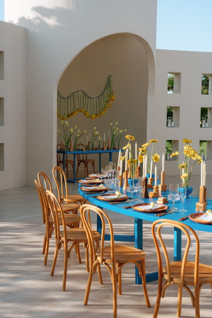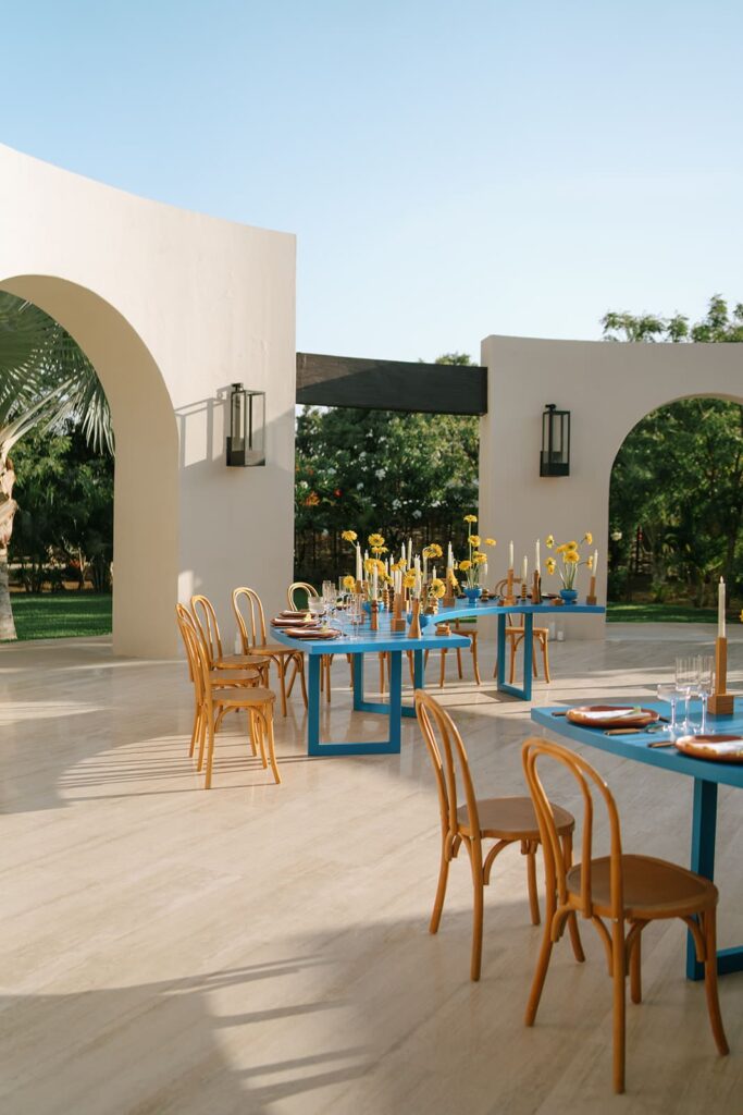 Vibrant color served as the inspiration for our design concept from the start. The color scheme of this photo shoot was vibrant, happy, and vibrant, much like love itself is varied and complex. Collaborating with the gifted group at Aria Vera Floral, We created arrangements full of texture and richness to honor the beauty of diversity. The flowers brought life to every corner of the celebration, turning Baja Luna into a kaleidoscope of emotions and colors.